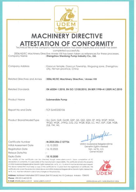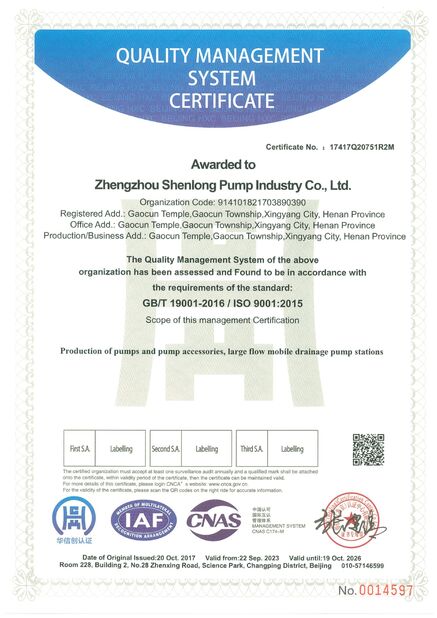 | نطاق / متوسط: | water pump, pump accessories and motor(within the scope of qualification)involved in the occupational health and safety management activities |